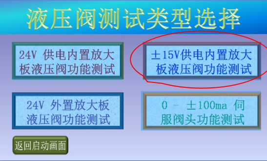 3、確認現(xiàn)場人員和設備安全后,點擊“進入測試”,進入液壓閥測試類型選擇畫面;